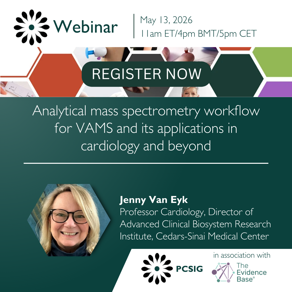 Dr Jennifer Van Eyk, PhD, an international leader in clinical proteomics, focuses on developing personalized biomarkers and individualized therapies via developing technical pipelines for large scale quantitative protein mass spectrometry. She received her PhD from the University of Alberta, Canada and carried out post-doc fellowships in Heidelberg, Germany and Chicago, USA. She started her lab at Queen’s University, Canada, was recruited to Johns Hopkins University and then to Cedars-Sinai Medical Center. There, she directs the Advanced Clinical BioSystems Research Institute with the motto, “from discovery to patient care”.
