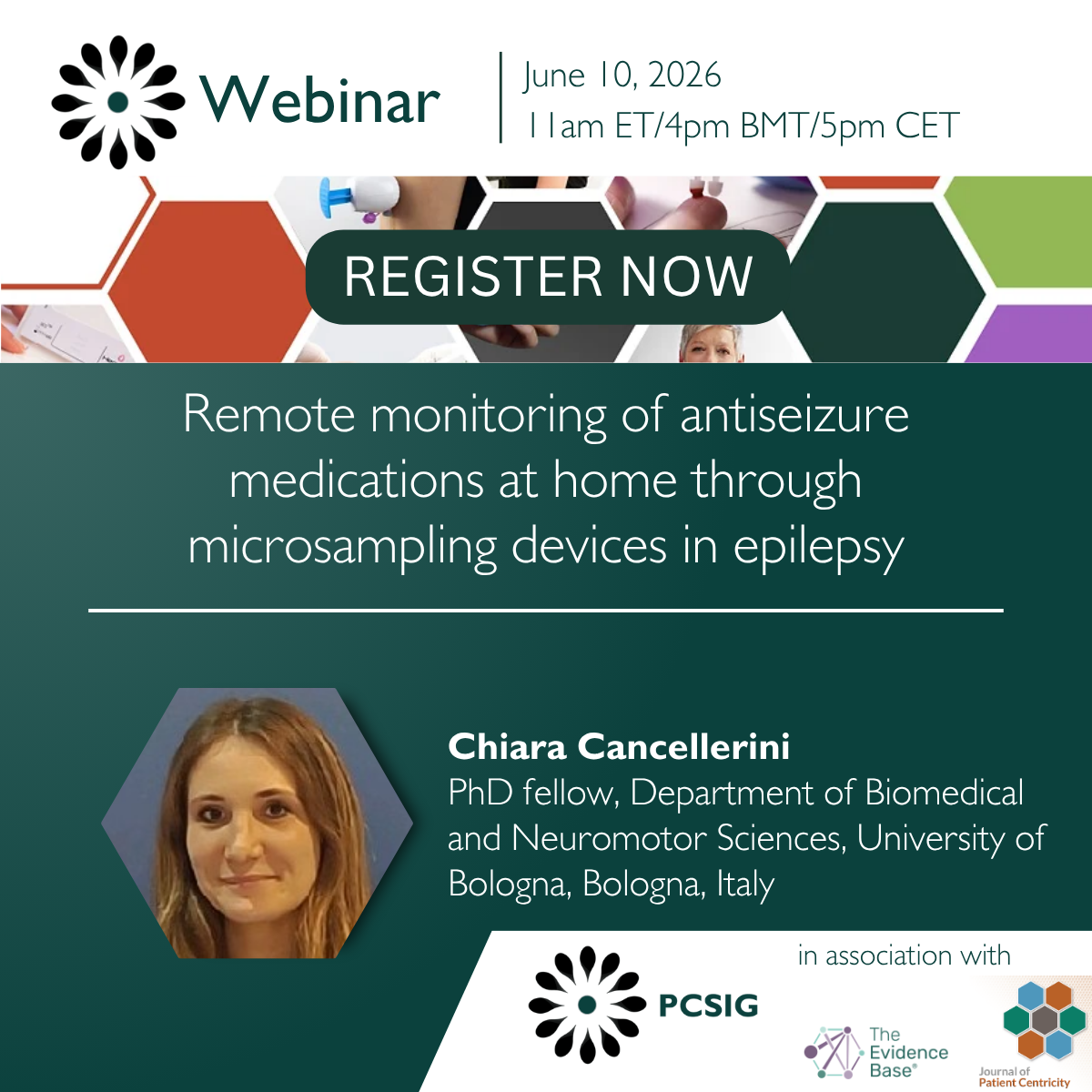 Chiara Cancellerini, PharmD, is a PhD Fellow in Biomedical and Neuromotor Sciences at the University of Bologna and the IRCCS Institute of Neurological Sciences. Her research focuses on clinical pharmacology and epilepsy, with a specialized track record in TDM and pharmacovigilance. She has experience in the analytical and clinical validation of microsampling devices, including VAMS and dried blood spots. During her studies, she spent a research period at Sahlgrenska University Hospital in Gothenburg, Sweden, for her Master’s thesis and conducted further research in Lausanne, Switzerland, to deepen her expertise in population pharmacokinetics.